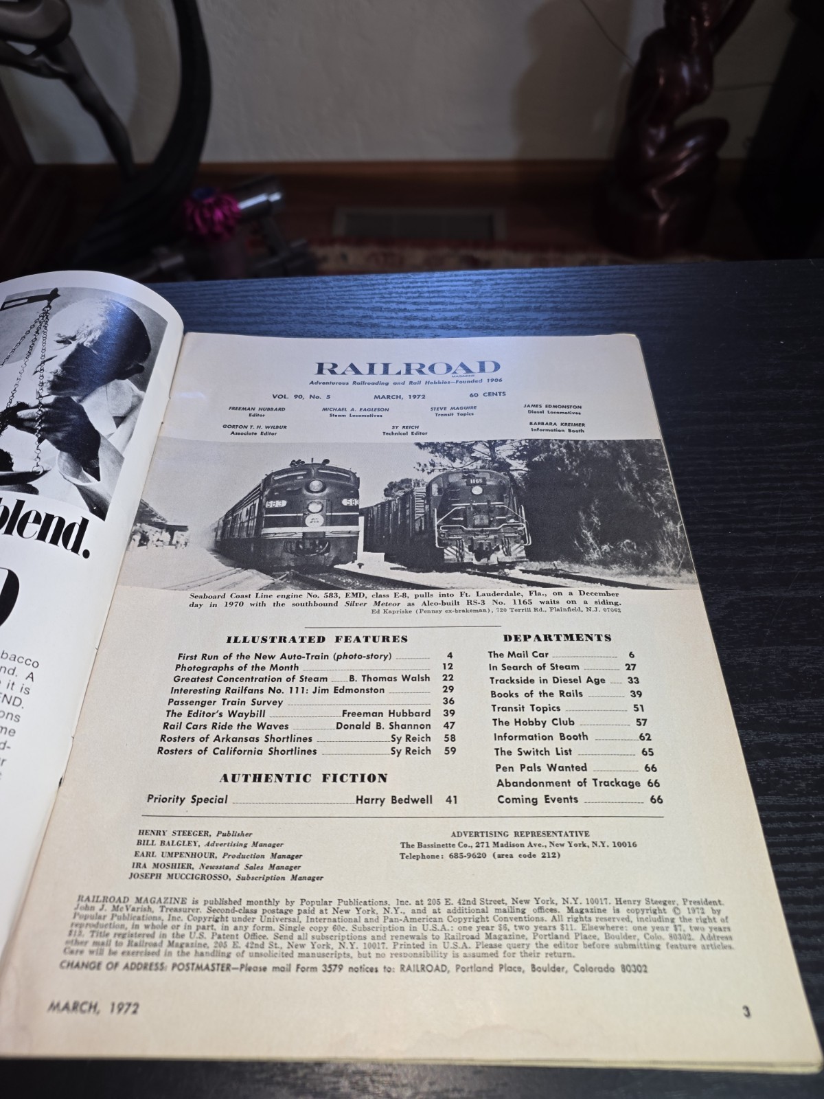 Railroad Magazine 1972 March Rosters Arkansas & California Shortlines Auto Train