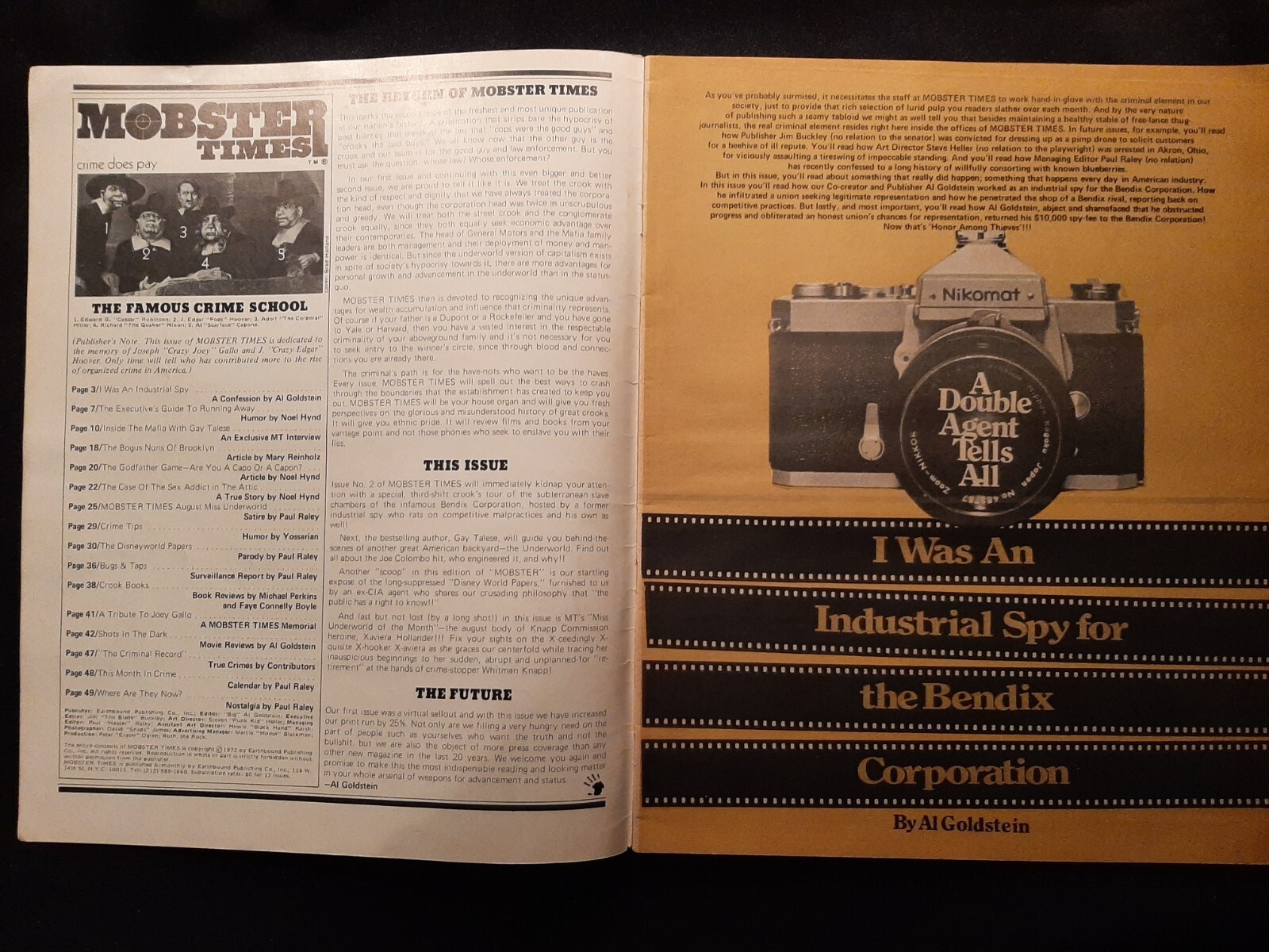 THE MAFIA: (THE MOBSTER TIMES) RARE LIMITED SERIES LARGE SIZE MAGAZINE ISSUE # 2 (THIS RARE LOW PRINT RUN MAGAZINE IS ALMOST IMPOSSIBLE TO FIND THAT CAME OUT IN THE EARLY 70,S (VERY RARE AND HARD TO FIND) THEY ONLY HAD A 3-ISSUE RUN