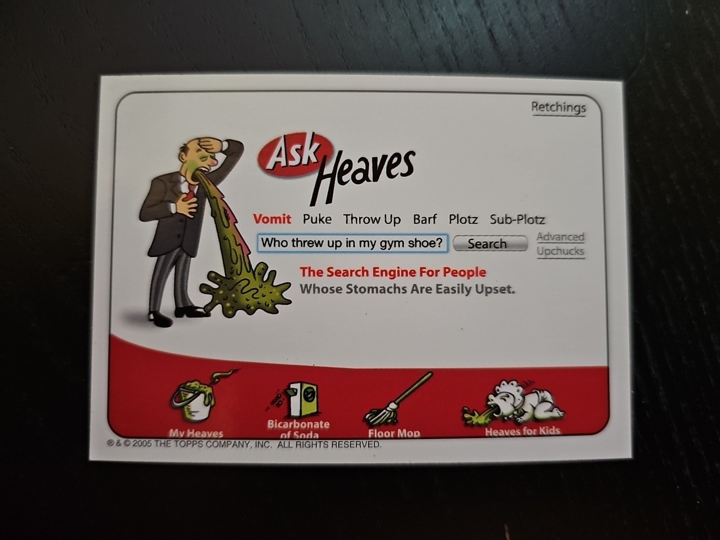 Original Senior Mints Wacky Packages sticker from Topps 2nd Series, 2005.