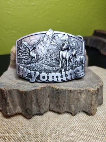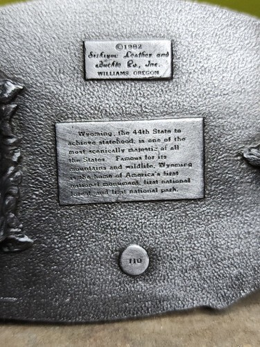 Siskiyou Leather and Buckle Co Wyoming 1982 Belt Buckle VTG USA