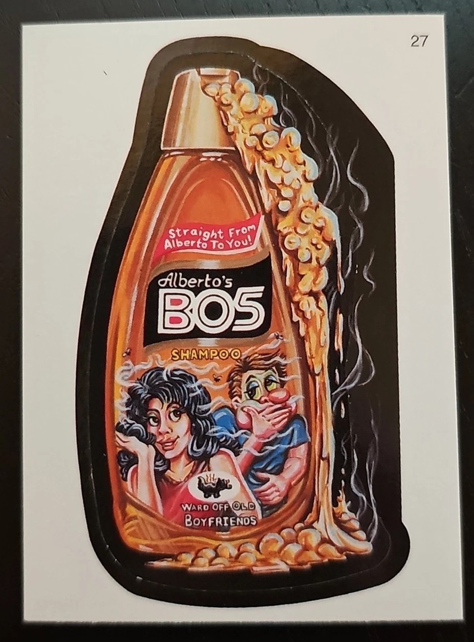 Original BO5 Shampoo Wacky Packages sticker from Topps 2nd Series, 2005.