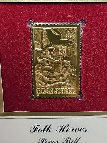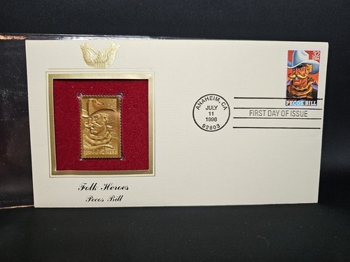 UP FOR SALE: Folk Heroes Pecos Bill July 11, 1996 1st Day Issue USPS 22KT Gold Stamp Set Anaheim CA