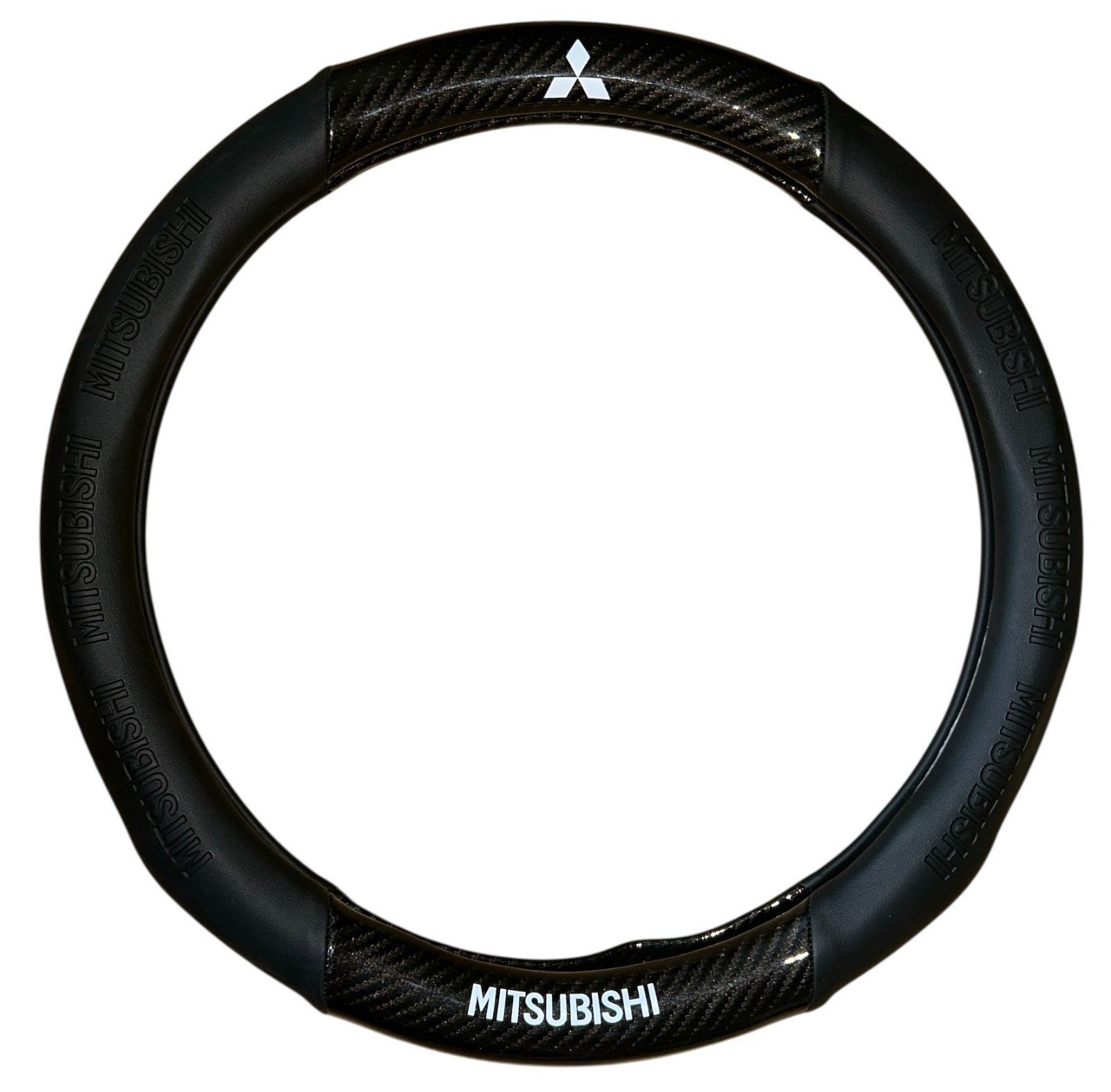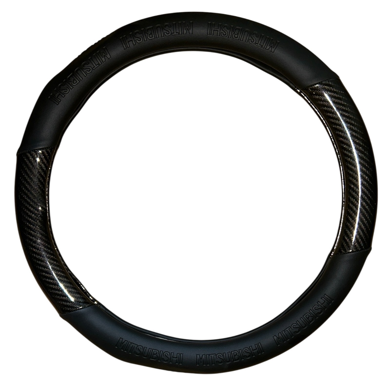 14.5" Steering Wheel Cover Trim Carbon Fiber & Black Leather Mitsubishi Non Slip