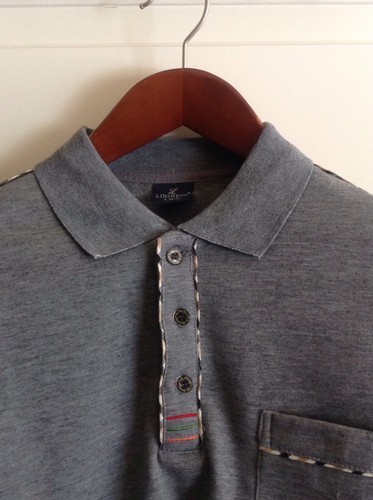NWOT Linsheng New Image L 48-50 Gray Cotton Blend Polo Shirt Plaid Detail SZ M