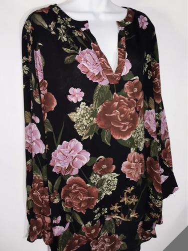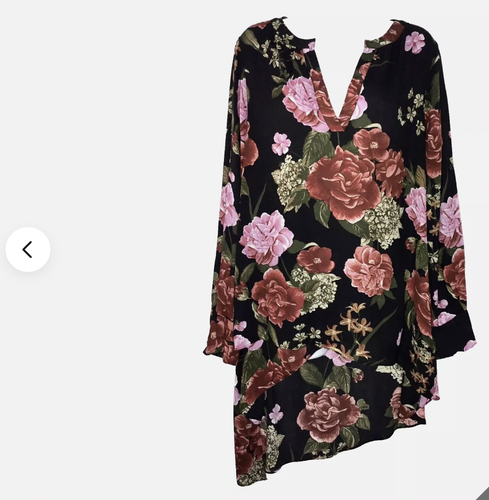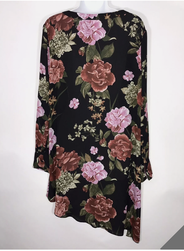 Catherine by Catherine Malandrino Black Pink Floral Asymmetrical Tunic Top SZ M