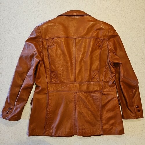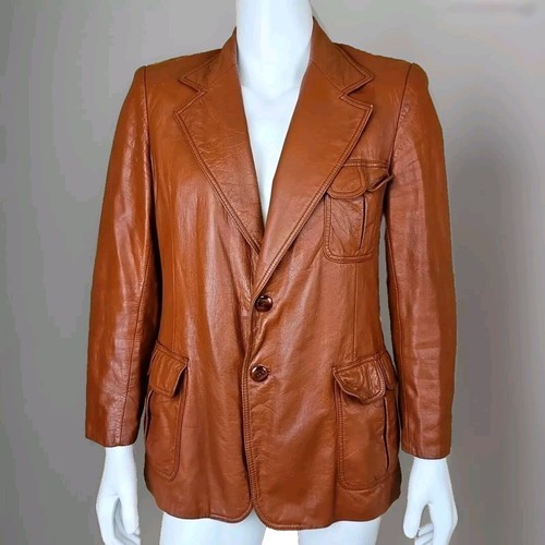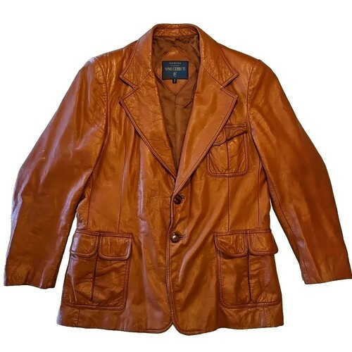 Vtg Nino Cerruti Leather Jacket Mens 46R Sports Coat 70s Chestnut Blazer Starsky