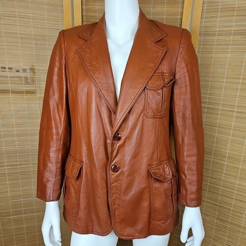 Nino Cerruti Sports Coat 70s Red/Rust Brown Leather Jacket Blazer