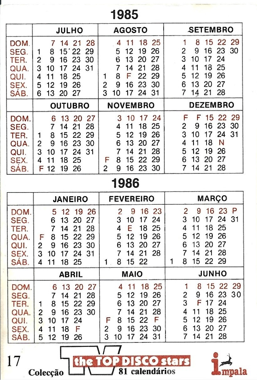⭕VTG card pocket calendar 1985 ELTON JOHN Portugal group music singer