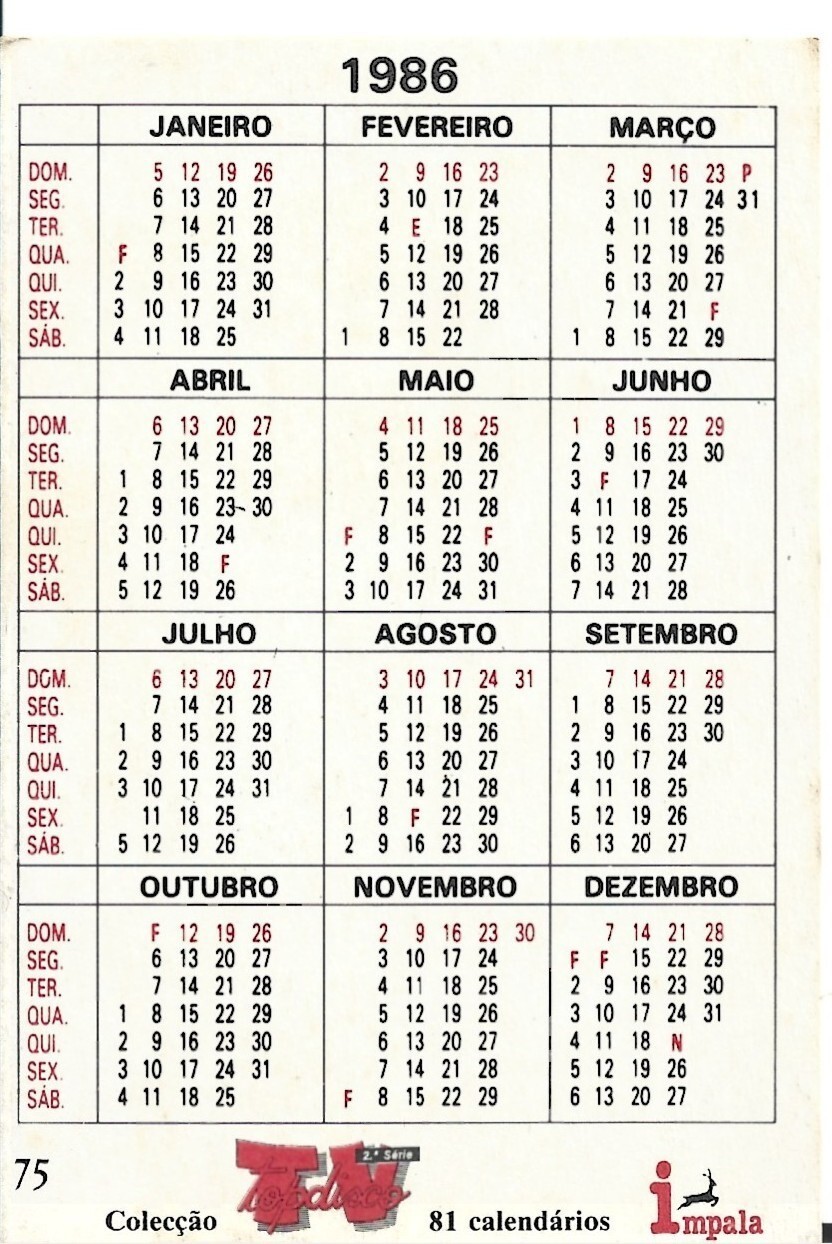 ⭕VTG card pocket calendar 1986 SMITHS Portugal group music singer