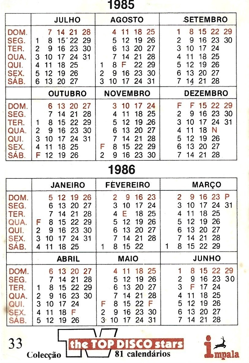 ⭕VTG card pocket calendar 1985 ROD STEWART Portugal group music singer