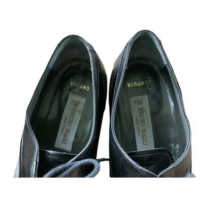 Vintage Bruno Magli Black Leather Varano Dress Shoes Mens 9.5 M Made In Italy Oxford