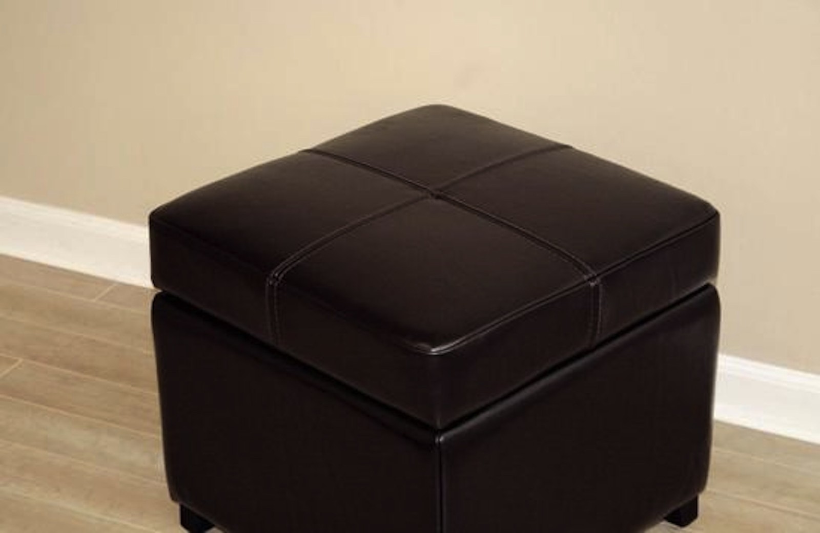 Cube Square Storage Ottoman Dark Espresso Brown Leather Foot Stool Flip Top