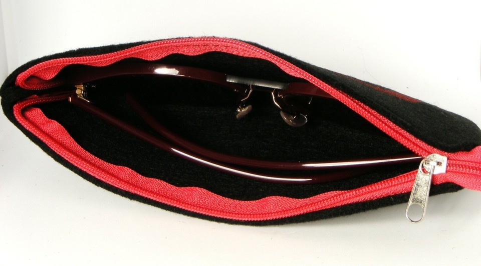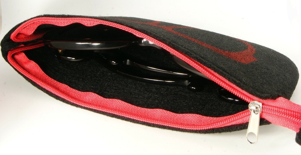 NEW Soft Strong Felt BLACK /RED Case with Zipper for all Sunglasses / Eyeglasses.