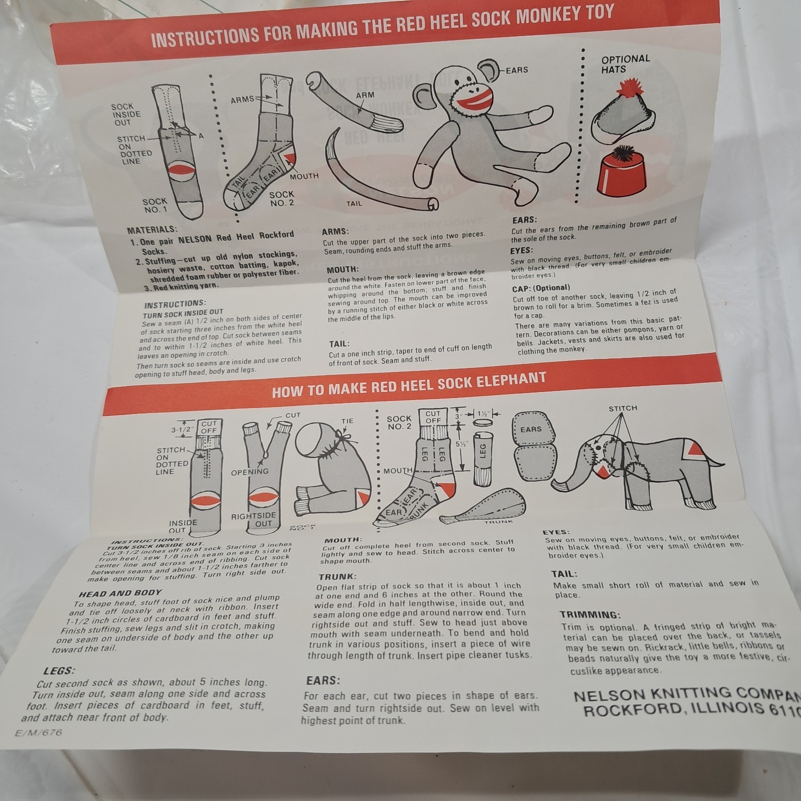 Vintage Nelson Rockford Red Heel Work 3 Socks Original Sock Monkey Sears READ
