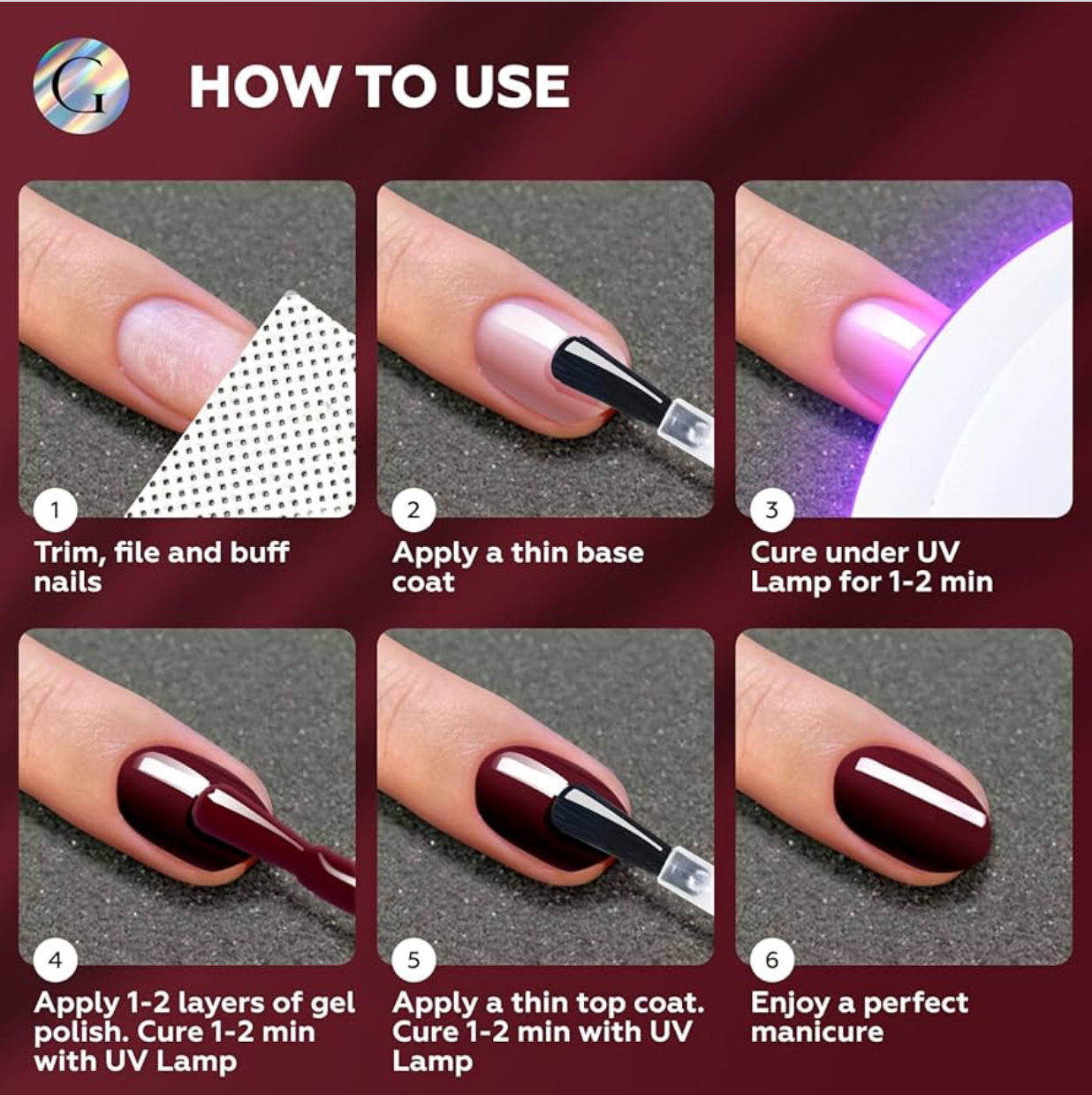 Durable Long Lasting: Enjoy flexible yet strong nails with wine red color with a perfect shine. The UV protection ensures long-lasting beauty, keeping your nails looking perfect for up to 28 days without any change in its vibrant color.