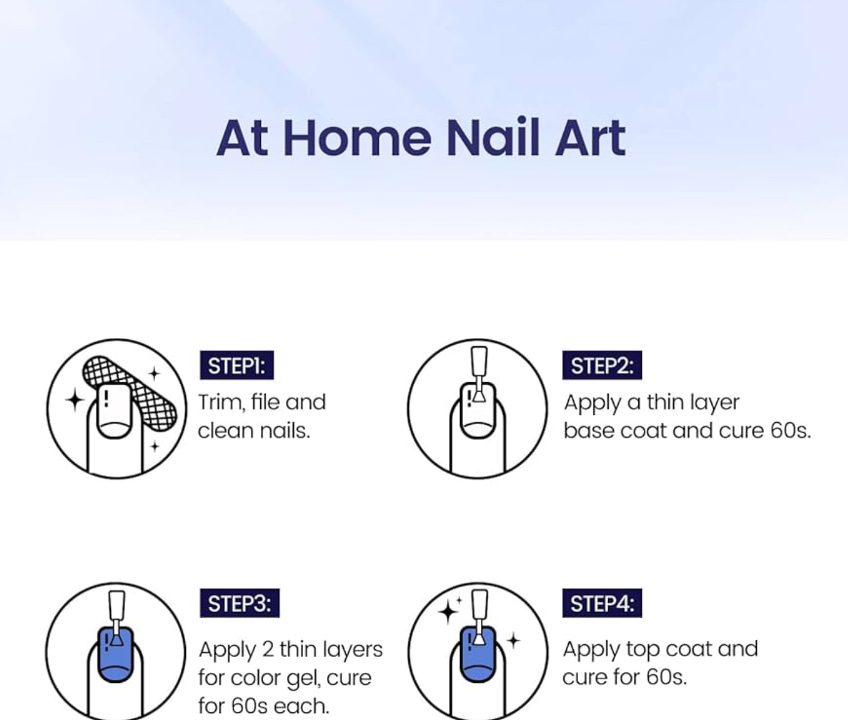 Quick Cure With Led Nail Lights?Gel Nail Polish is ideal for nail salons where you can design your own nails at home to show off your personal style. Keep in mind that gel nail polish needs to be cured under an LED or UV light, usually for 60-120 seconds.