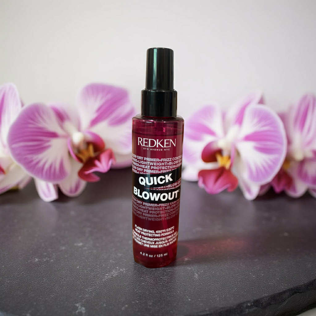 Redken Quick Blowout Flash Drying formula 4.2 oz is A lightweight blow-dry primer spray that conditions hair while protecting from heat tools.