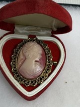 Vintage Gold Tone Cameo Brooch Pin pretty Woman Accent. First class package