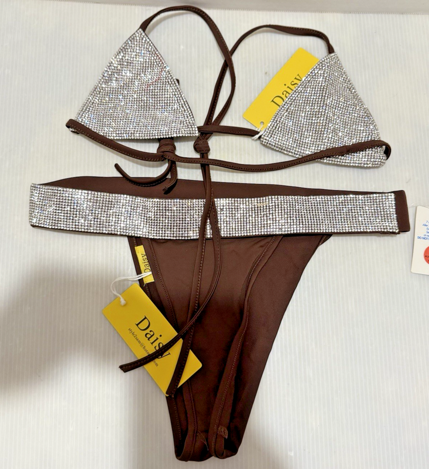 Dippin' Daisy's Brown Rainstones Bikini Tops & Bottoms - NWT