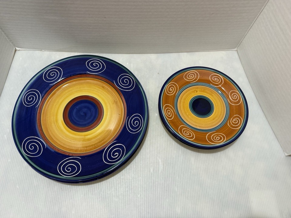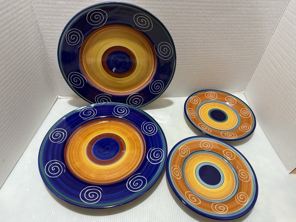 Set of 4 Italian Swirl by Pier 1 Salad Plates 8” & 12" plate Italy Hand Painted