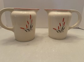 2pc Sears Roebuck And Co. Cattail Oven Proof Vintage Pottery Pitcher