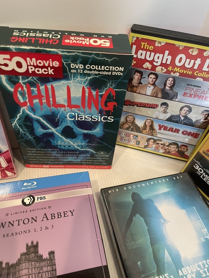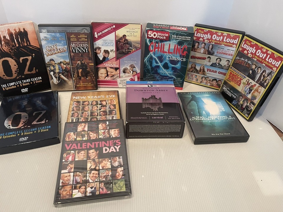 11 Pc Lot DVD Movies BOX SET OZ, DOWNTON ABBEY, 50 PK CHILLING CLASSICS, LAUGH