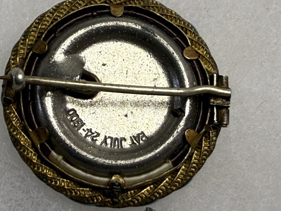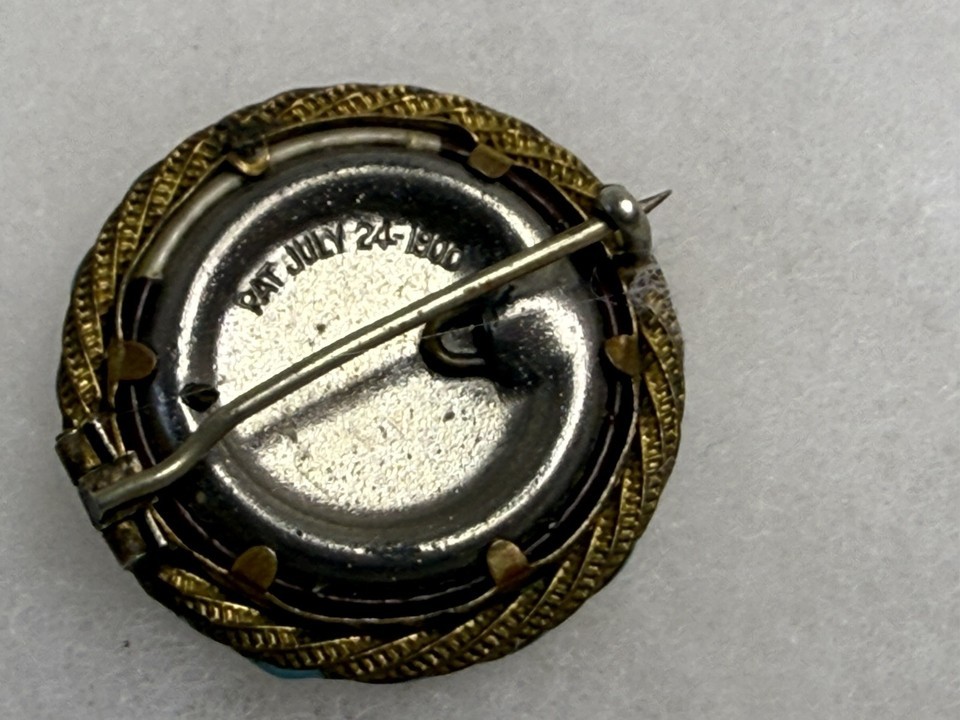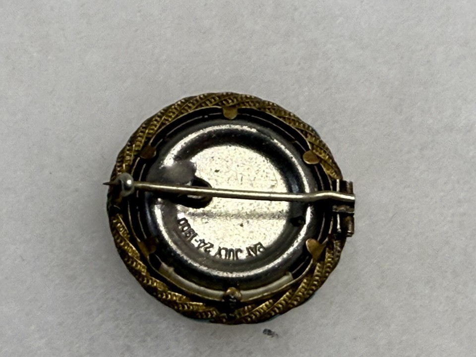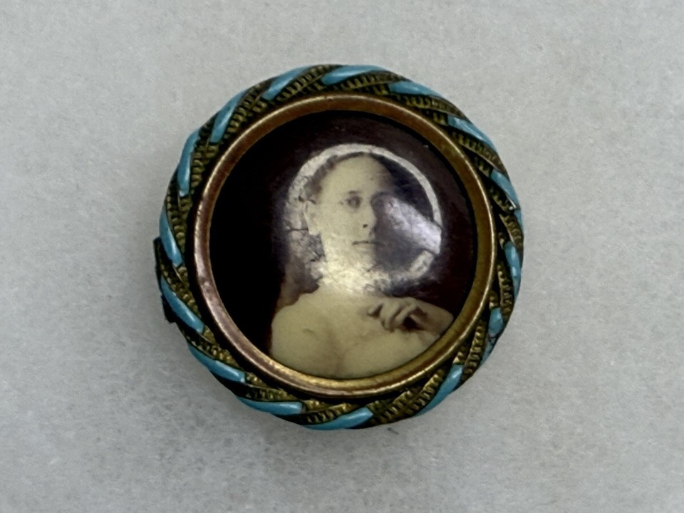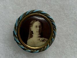 Antique Mourning Brooch Pin Gold Tone, Turquoise Lady's Photo DATED 1900