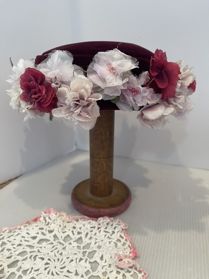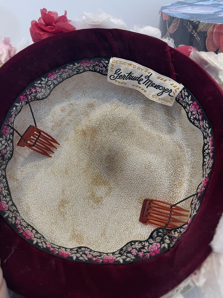Gertrude Menczer Deep Red velvet with Flowers and inside hair combs