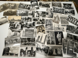 This lot of 45 vintage black and white photo postcards features a variety of subjects such as people, buildings, and scenic landscapes. Each postcard provides a glimpse into the past with its historical and unique images. Perfect for collectors or those interested in topographical postcards, this assortment offers a diverse range of scenes and subjects to enjoy and preserve.