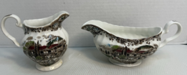 Vtg Friendly Village 2pc Lot Creamer & Gravy Johnson Brothers The Old Mill