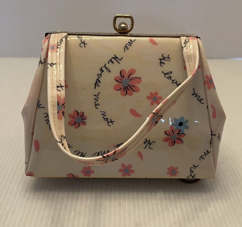 1950s RARE R Vinyl Wind-up Music Box Decorative Purse Clutch. Working Vintage