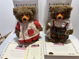 2 Robert Raikes Jack & Jill Signed Wood/Plush Bears |