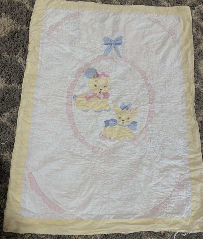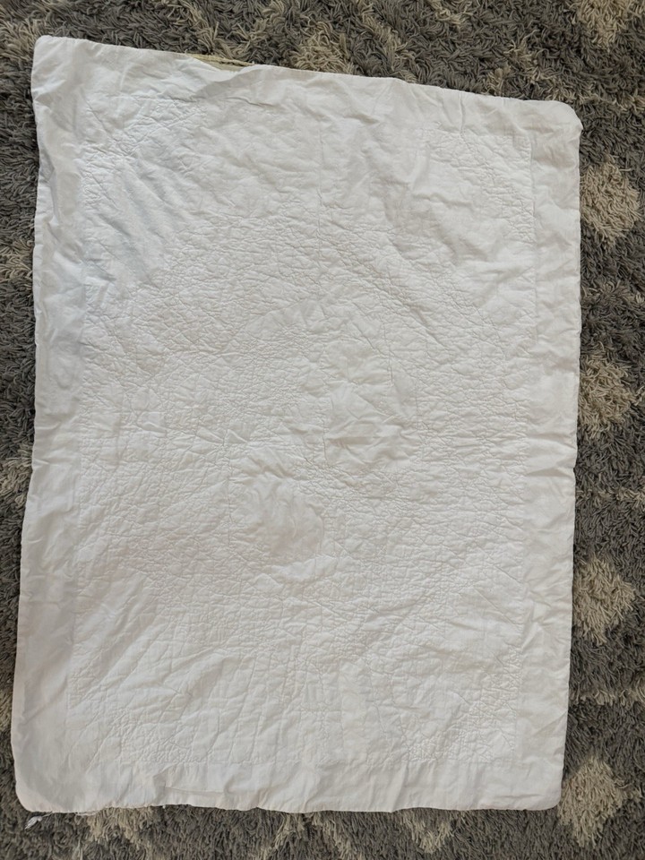 Antique American Yellow & White Hand Quilted & Sewn Baby Cutter Quilt