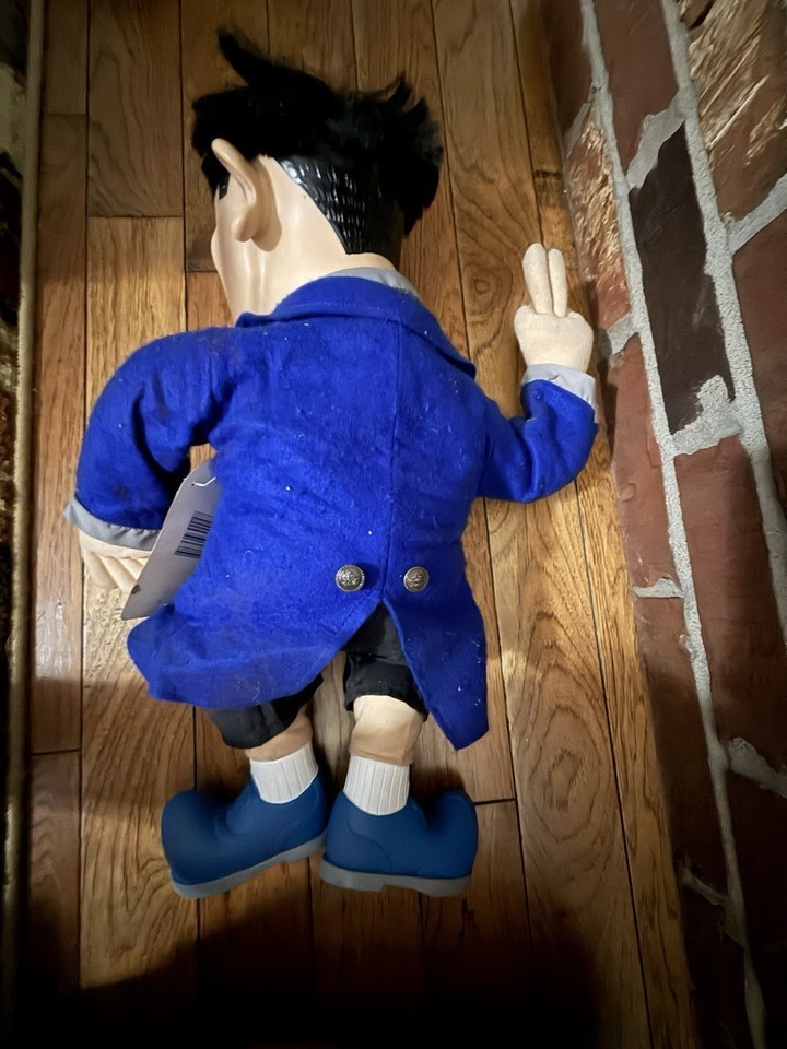 This vintage 1996 Spumco Three Stooges dolls set featuring Moe, Larry, and Curly stands at 22 inches tall. These multicolor plastic dolls are an original licensed reproduction, embodying the iconic characters from the classic TV show. Perfect for collectors or fans of the Three Stooges franchise, this set captures the essence of the beloved comedians in a nostalgic and timeless display.