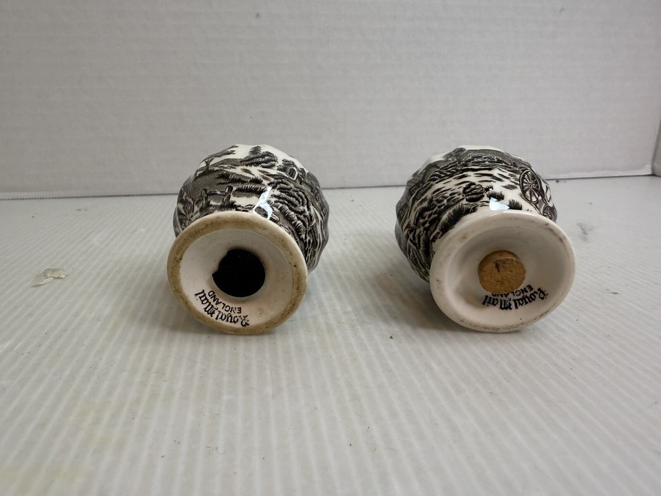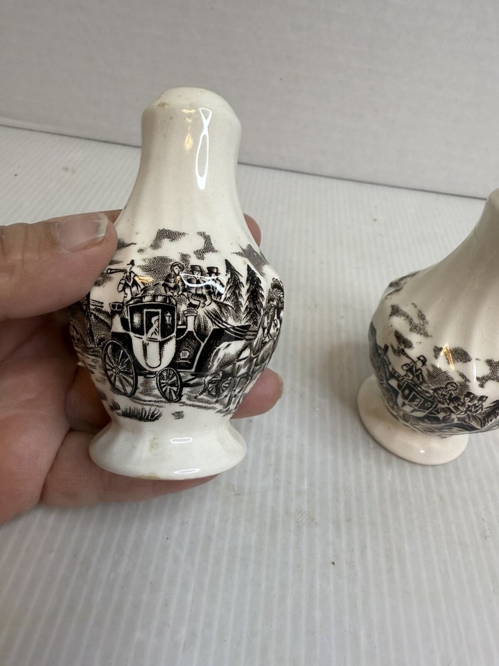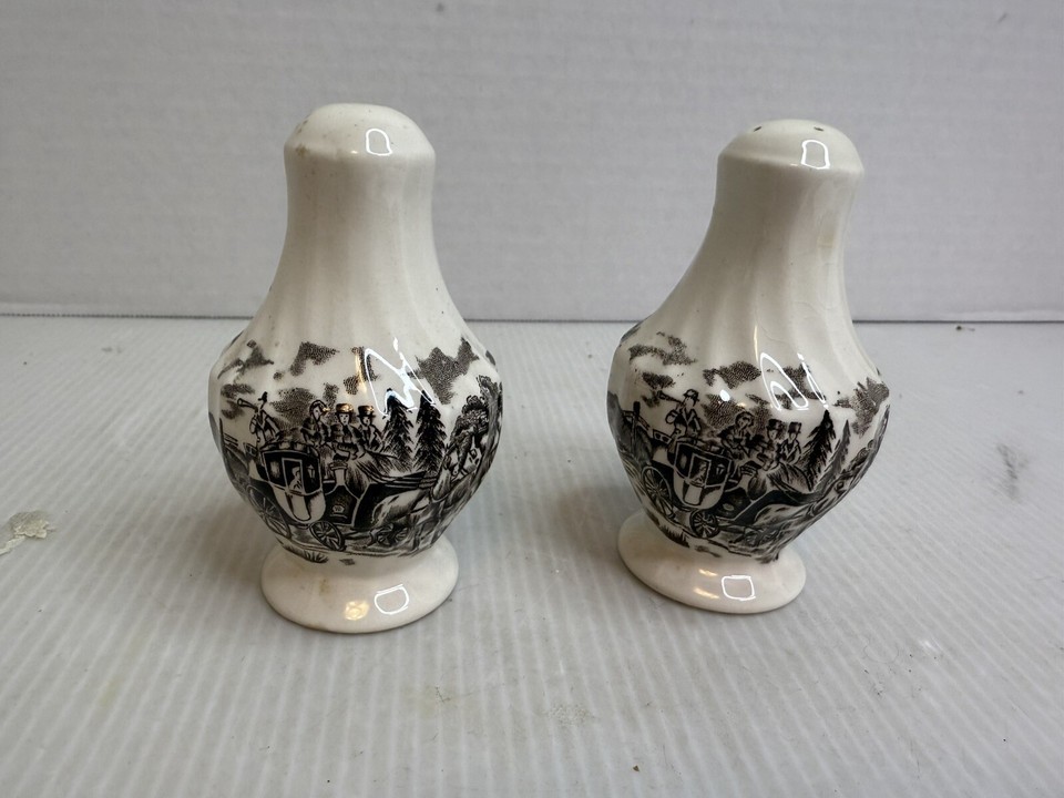 Myott Royal Mail Sepia Black/ Brown Salt and Pepper Shakers with Stoppers
