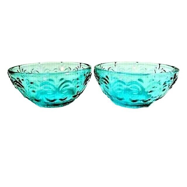 Pioneer Woman 2 Teal Pressed Glass Dip Bowls and similar items