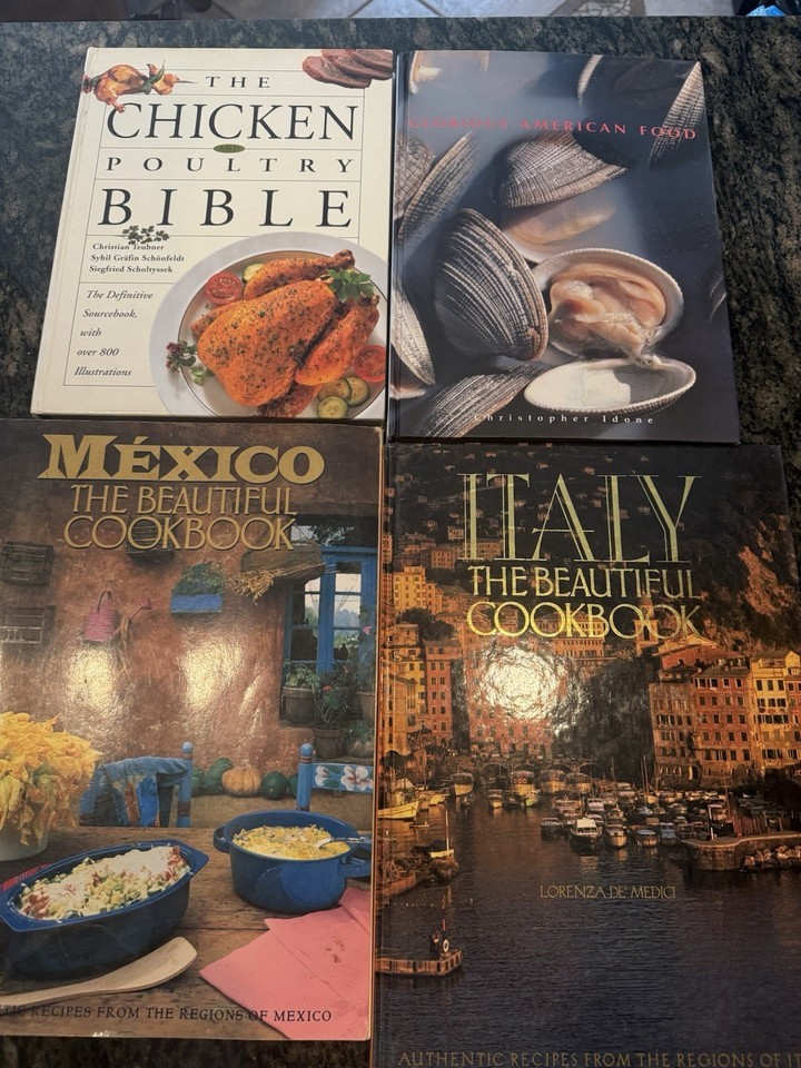 4pc Cookbook all hardcover- Authentic Recipes from the Regions of Mexico and Italy, Glorious and Chicken Poultry Bible