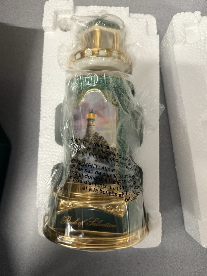Thomas Kinkade 8” Painter Of Light Tk Lighthouse Rock Of Salvation. 2004