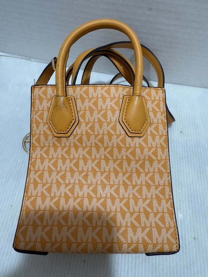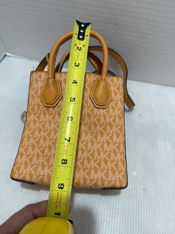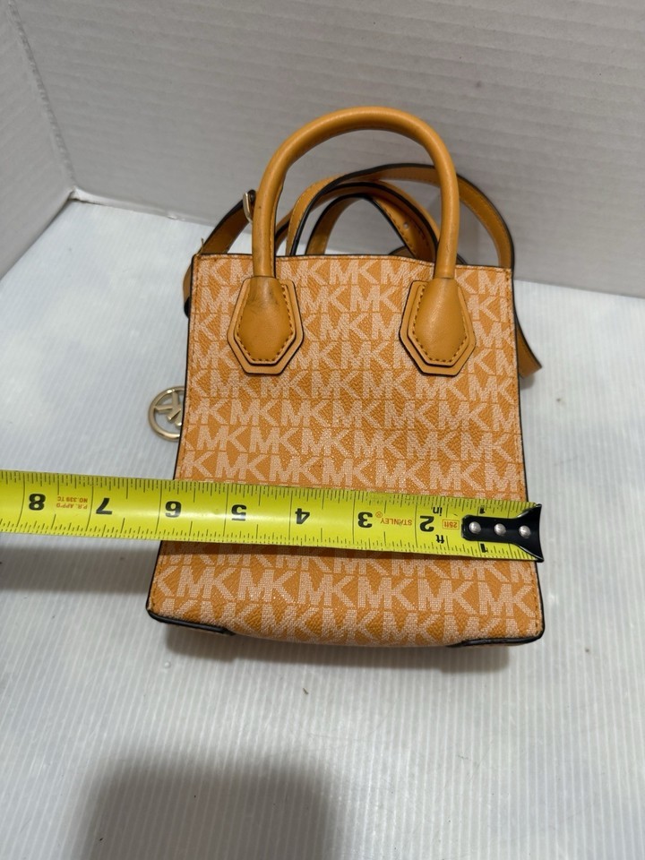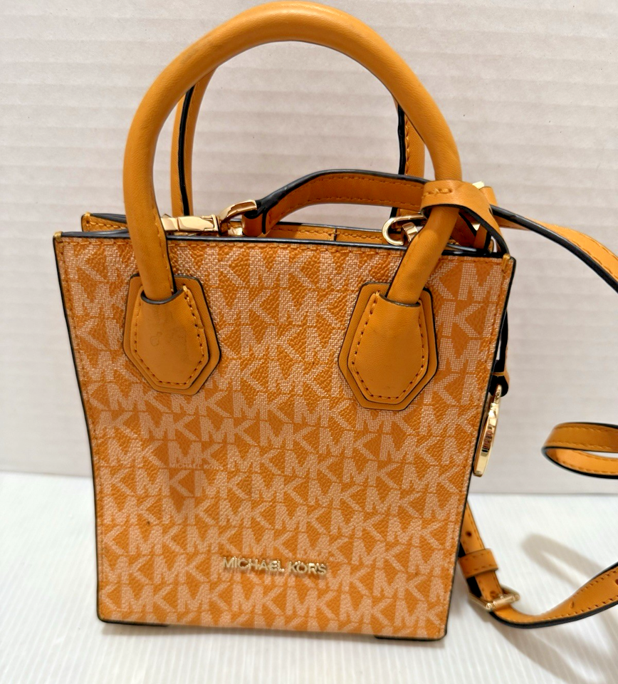 Michael Kors Mercer Orange Pebble Grain Leather Mini CC Snap Crossbody Satchel