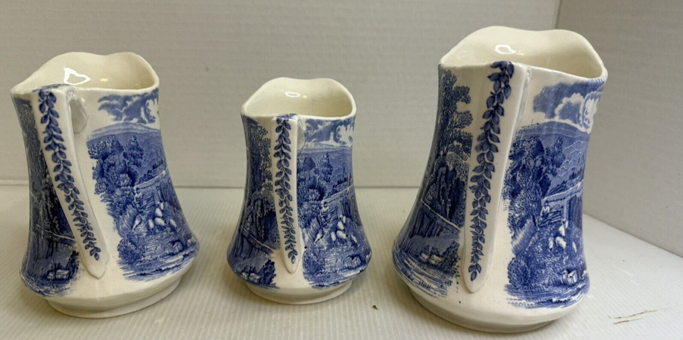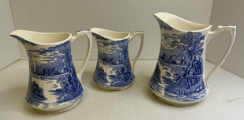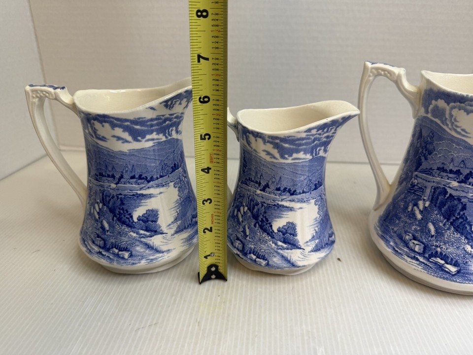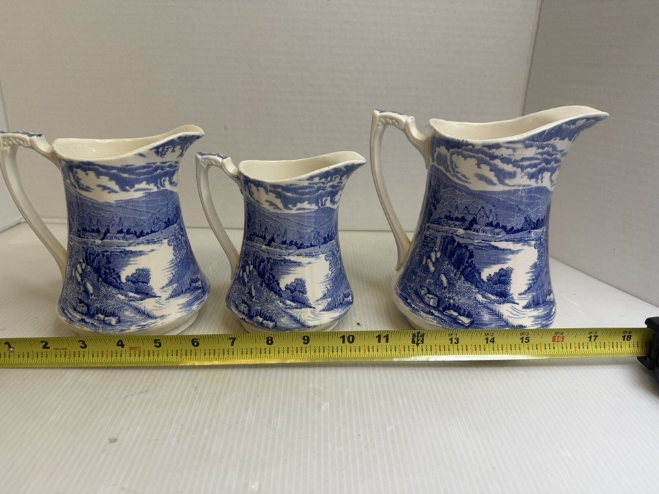 3pc lot Alfred Meakin "Tintern" Blue Transferware Pitcher, Great Condition