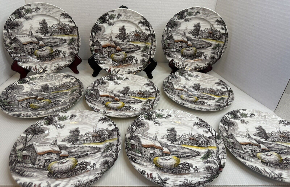 9pc lot Vtg Yorkshire IRONSTONE Staffordshire Dinner Plates 10"