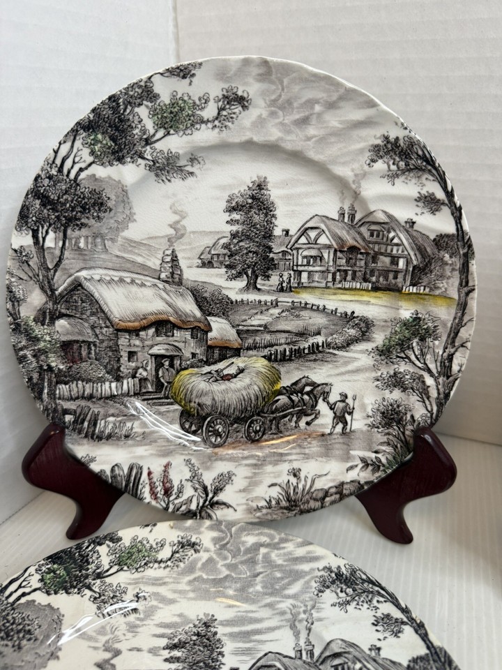 9 pc Vtg Staffordshire Yorkshire Multicolor Dinner Plates 10" EUC