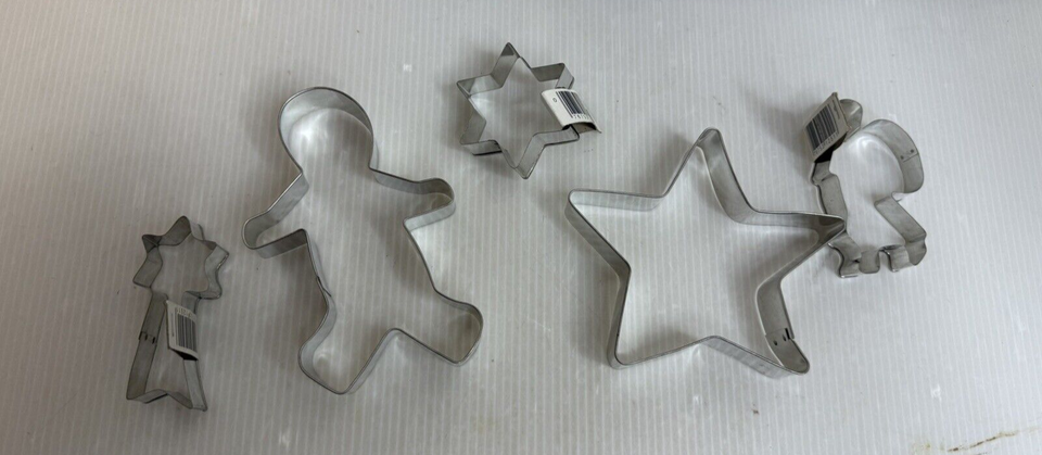 SET OF 5 SILVERTONE METAL CHRISTMAS COOKIE CUTTERS