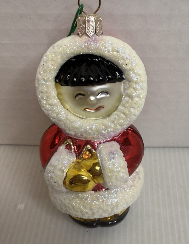 Holiday Lane Mouth Blown and Hand Painted Glass Eskimo Ornament.
