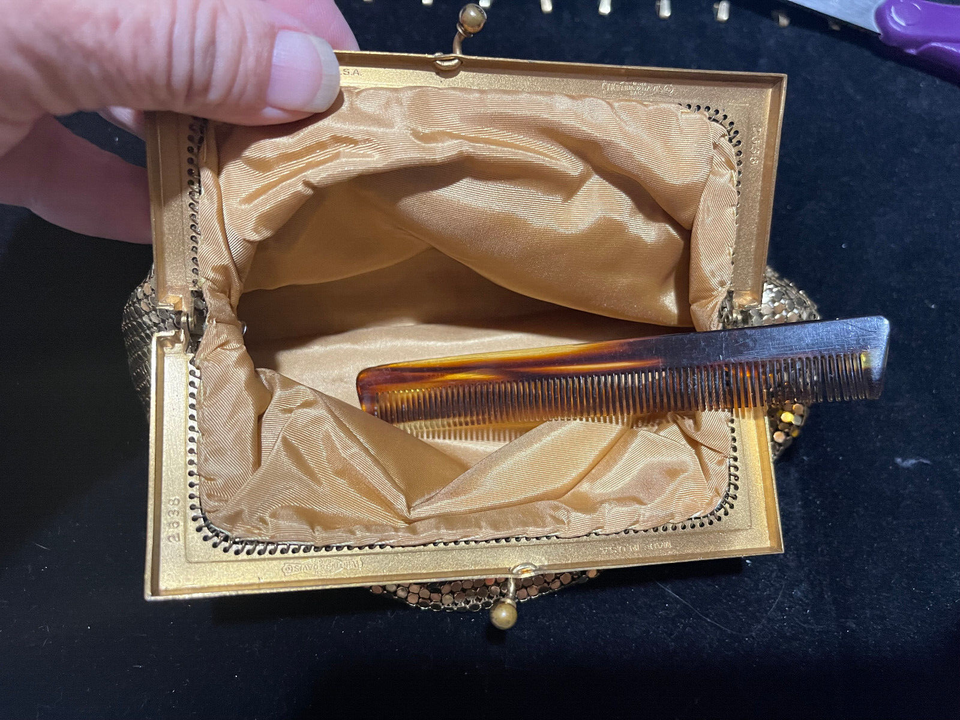 Whiting & Davis Gold Mesh Bag Vintage Handbag Evening Purse With Comb