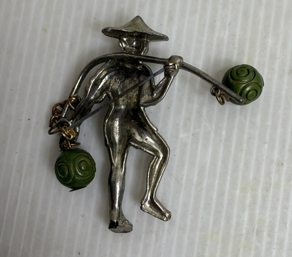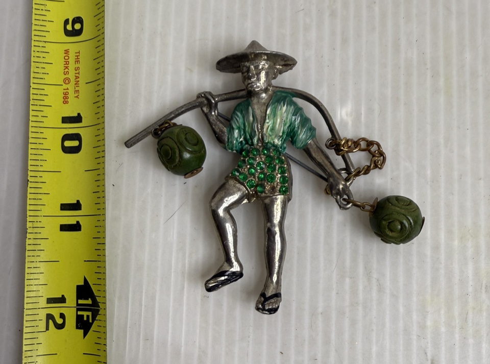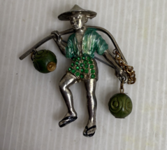 Vintage Louis C. Mark Rice Weiner Enamel Chinese Water Carrier Brooch