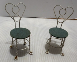 2 Vintage Dollhouse Miniature "White Metal Wicker" Ice Cream Parlor Chairs