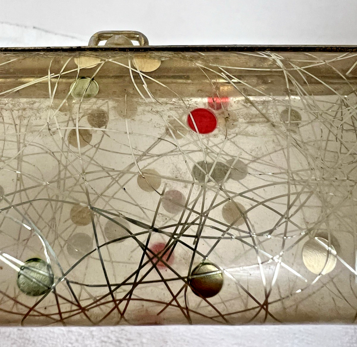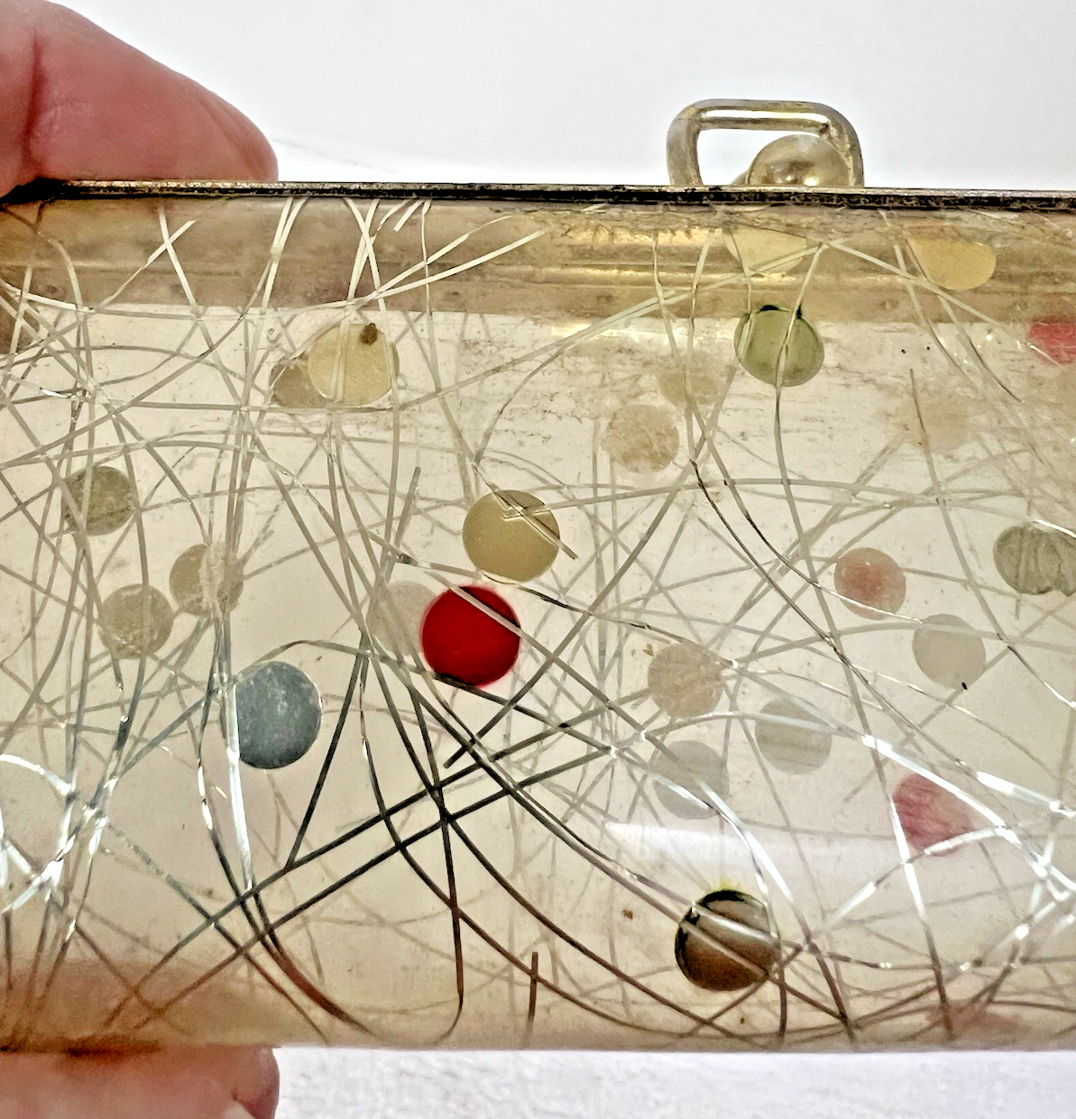 1950's Vintage Eyeglass Case Holder w Glitter 6 x 2 1/4 inch See Thru In good shape some normal finish wear from use but years of use ahead of it
