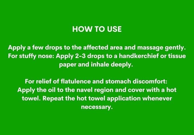 For stuffy nose: Apply 2-3 drops to a handkerchief or tissue paper and inhale deeply.