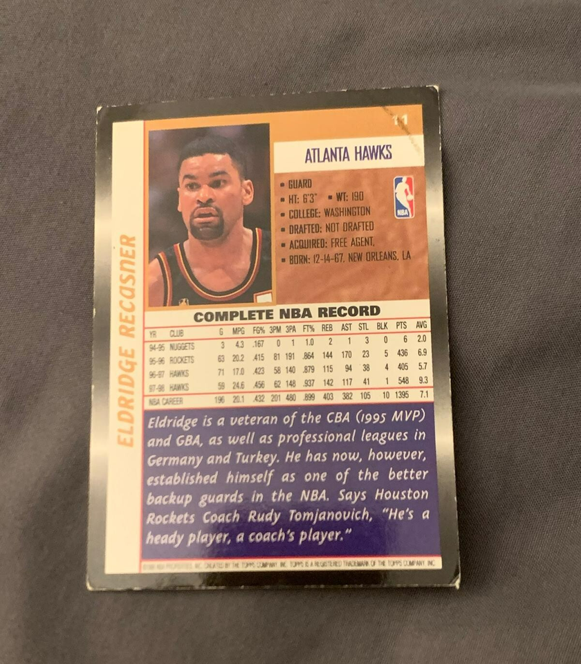 Eldridge Recasner #5 Atlanta Hawks Topps NBA Basketball Card Vintage